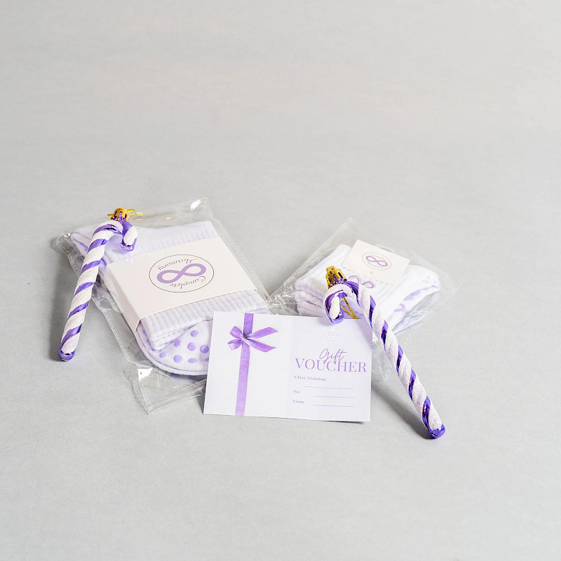 A Toddler Yoga Christmas Gift Set including a term of Toddler Yoga and a set of Adult and Toddler Grip Socks